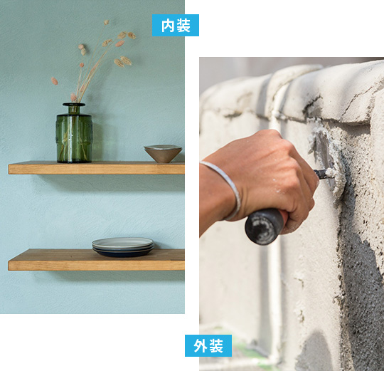 左官工事は、コテを使って手作業で仕上げるため、あたたかみのある風合いをつくり出せるのが特徴です。自然素材を使った内壁は体にやさしく、調湿機能もあるため、快適な空間づくりにぴったり。